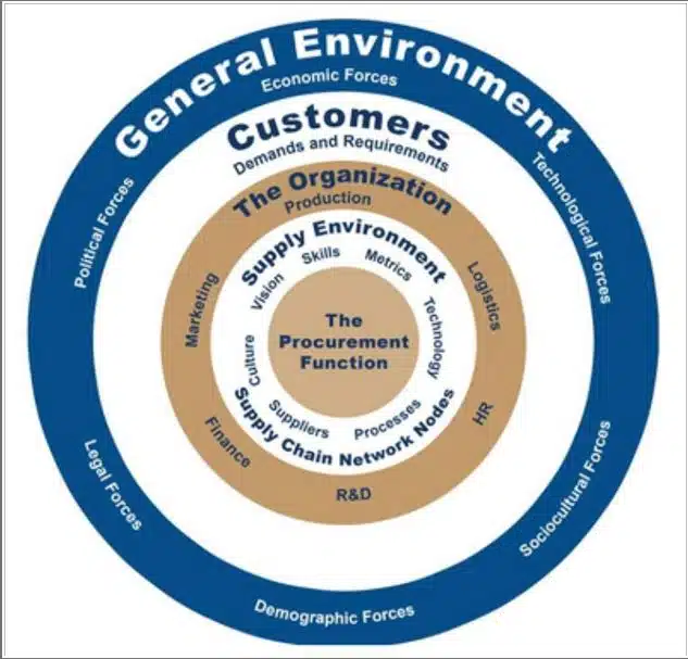 - Organization or Business Environment: The Procurement Function is mandated to support its operations, manage spend, and protect it from supply risks.