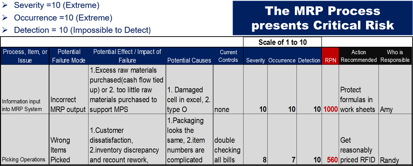 Table 1, FMEA for MRP Process Permission for use granted by USA LEAN Engineering, LLC